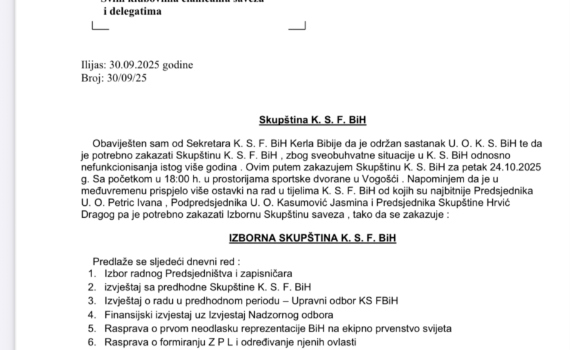 Na osnovu obavijesti Sekretara Kuglaškog saveza Federacije BiH, Bibije Kerla, da je održan sastanak Upravnog odbora KS FBiH, donesena je odluka da se zbog višegodišnjeg nefunkcionisanja Saveza zakaže Skupština KS…